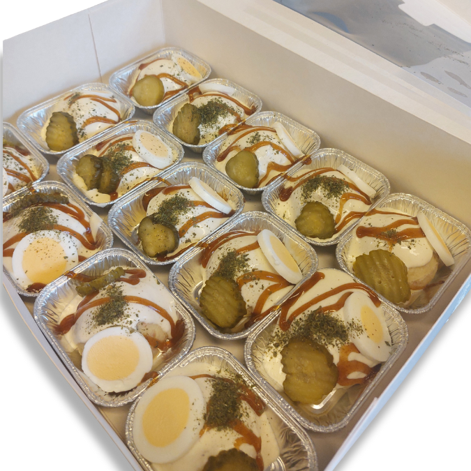 aardappel, mayonaise (raapolie, eigeel, azijn, water, glucose-fructosestroop, water, mosterdzaden, azijn, specerijen, zout, suiker, citroenzuur, kaliumsorbaat, guarpitmeel,xantaangom, antioxidant e385, natuurlijk aroma), boterhamworst (varkensvlees, varkensseperatorvlees, varkenseiwit, varkensspek, water, aardappelzetmeel, rundvlees, zout, gebufferd azijnpoeder, e450, specerijen, e575, e301, gehydrolyseerd eiwit, glucosestroop, ui, paprika, rookaroma, e250, zonnebloemolie, specerijenextract), water, ei, augruk in zuur ( augurken, natuurazijn, zout, conserveermiddel: natriumbenzoaat, natuurlijk aroma, zoetstof: sacharine.), ui, azijn, wortel salade (wortelen, natuurazijn, zout, suiker, natuurlijk wortelaroma, zoetstof: sacharine), curry oliehoorn (water, suiker, gemodificeerd maiszetmeel, tomatenpuree, azijn, zout, kruiden & specerijen (bevat mosterd), kleurstof (caramel), conserveermiddel (kaliumsorbaat), natuurlijk aroma.), frietsaus (water, raapolie, glucose-fructosestroop, azijn, maiszetmeel, suiker, scharrelei, zout, gemodificeerd maiszetmeel, water, mosterdzaden, azijn, specerijen, guarpitmeel, citroenzuur, kaliumsorbaat, natuurlijk aroma, e385, carotenen), suiker, kruidenmix lub (keltisch zeezout, suiker, stevia, bloem, zwarte peper, witte peper, kurkuma, paprikapoeder, chilipoeder, nootmuskaat, kerrypoeder, uienpoeder, koriander), kaliumjodide, room (melk), maggi aroma (gehydrolyseerde plantaardige eiwitten (water, tarwe-eiwitten, zout), water, aroma's (met tarwe), smaakversterkers (mononatriumglutamaat, natriuminosinaat), zout, suiker.), kruiden en specerijen(gemalen peper), aromat (zout, smaakversterkers (e621, e631, e627), melksuiker, aardappelzetmeel, palmvet, ui, specerijen (knoflook, kurkuma), aroma's (bevat selderij).), tuinkruiden (bieslook, peterselie, selderij), bakkerszout, antiklontermiddel(E535 (natriumferrocyanide)), stabilisator(E407 (carrageen))