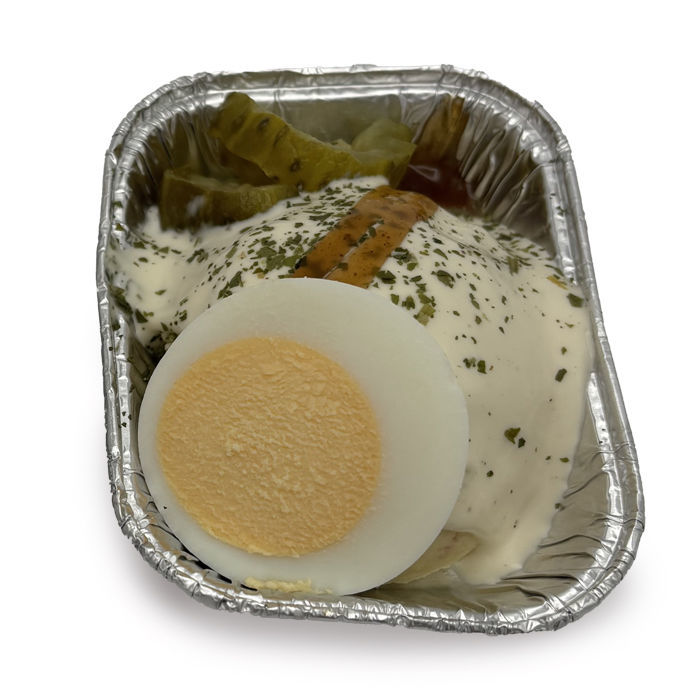 aardappel, mayonaise (raapolie, eigeel, azijn, water, glucose-fructosestroop, water, mosterdzaden, azijn, specerijen, zout, suiker, citroenzuur, kaliumsorbaat, guarpitmeel,xantaangom, antioxidant e385, natuurlijk aroma), boterhamworst (varkensvlees, varkensseperatorvlees, varkenseiwit, varkensspek, water, aardappelzetmeel, rundvlees, zout, gebufferd azijnpoeder, e450, specerijen, e575, e301, gehydrolyseerd eiwit, glucosestroop, ui, paprika, rookaroma, e250, zonnebloemolie, specerijenextract), water, ei, augruk in zuur ( augurken, natuurazijn, zout, conserveermiddel: natriumbenzoaat, natuurlijk aroma, zoetstof: sacharine.), ui, azijn, wortel salade (wortelen, natuurazijn, zout, suiker, natuurlijk wortelaroma, zoetstof: sacharine), curry oliehoorn (water, suiker, gemodificeerd maiszetmeel, tomatenpuree, azijn, zout, kruiden & specerijen (bevat mosterd), kleurstof (caramel), conserveermiddel (kaliumsorbaat), natuurlijk aroma.), frietsaus (water, raapolie, glucose-fructosestroop, azijn, maiszetmeel, suiker, scharrelei, zout, gemodificeerd maiszetmeel, water, mosterdzaden, azijn, specerijen, guarpitmeel, citroenzuur, kaliumsorbaat, natuurlijk aroma, e385, carotenen), suiker, kruidenmix lub (keltisch zeezout, suiker, stevia, bloem, zwarte peper, witte peper, kurkuma, paprikapoeder, chilipoeder, nootmuskaat, kerrypoeder, uienpoeder, koriander), kaliumjodide, room (melk), maggi aroma (gehydrolyseerde plantaardige eiwitten (water, tarwe-eiwitten, zout), water, aroma's (met tarwe), smaakversterkers (mononatriumglutamaat, natriuminosinaat), zout, suiker.), kruiden en specerijen(gemalen peper), aromat (zout, smaakversterkers (e621, e631, e627), melksuiker, aardappelzetmeel, palmvet, ui, specerijen (knoflook, kurkuma), aroma's (bevat selderij).), tuinkruiden (bieslook, peterselie, selderij), bakkerszout, antiklontermiddel(E535 (natriumferrocyanide)), stabilisator(E407 (carrageen))